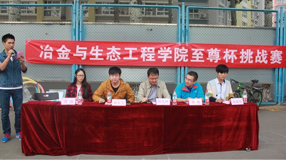 10月17日上午9点整,由冶金与生态工程学院团委学生会主办的学院2015级“至尊杯”新生团队挑战赛在校篮球场隆重举行,学院2015级本科新生以班级为单位参加活动。学院团委书记杨志伟老师,本科2015级辅导员陈曦老师和学院团委学生会、团学新闻中心负责同学担任评委。学院团委学生会2014级学生骨干担任活动裁判。