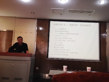 熊卫民副研究员从六个方面与大家分享了他在中国现代科技史研究方面的心得体会。首先,他论述了当代修史的优势和弊端,并认为这些弊端是可以避免的;其次,从时代意识形态、工作的保密性、小道消息在传播中的变形等多方面阐述了现代科技史研究的困难之所在及其导致的诸多谜案;第三,介绍了他个人已做和打算做的一些中国现代科技史研究的选题及相关经验;第四,介绍了包括文献、口述记录、实地考察等多种史料搜集方法与经验,并与大家分享了几种科技史研究常用的电子数据库的使用方法;第五,通过与警察侦探过程的类比,提出科技史研究人员研究和侦破科技史谜案的思路、方法和具体步骤,并详细介绍了如何把握事件发展的关键点;第六,讨论了中国现代科技史研究的写作问题,比较分析了考据学家、文学家、社会学家等不同视角对所掌握的资料进行加工写作的特点和优劣,分享了其个人写作的经验与体会。