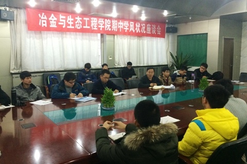 为全面、准确地了解学风状况,搭建师生沟通交流的良好平台,更好地加强和改进学风建设工作,提高教学质量。冶金与生态工程学院于2014年12月3日至12月4日开展了期中学风状况座谈会,座谈会以年级为单位开展。院长张立峰,党委书记宋波,党委副书记王春义,各系主任、班导师以及本科各年级辅导员分别参加了各年级学风状况座谈会。