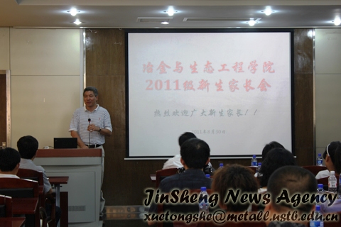 本社讯 2011年8月30日下午,随着新生报到工作基本结束,冶金与生态工程学院新生家长会在冶金楼青钢报告厅举行。学院院长朱鸿民教授与党委副书记王春义老师参与并主持此次家长会。此外,学院教务处王丽娟老师也出席了本次会议。