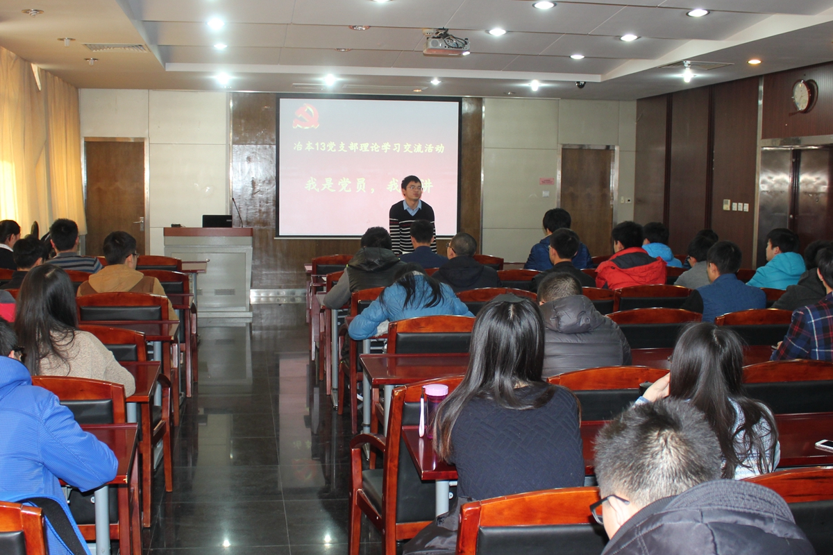 为加强冶本13党支部成员的理论学习,提高党支部成员的理论素养,践行我院“我是党员,我带头” 主题教育活动安排,冶金与生态工程学院冶本2013级党支部党于11月29日在冶金楼青钢报告厅举行 “我是党员我来讲”理论学习活动。支部党员和积极分子60余人参加了学习活动,辅导员郝勇飞老师进行现场指导。