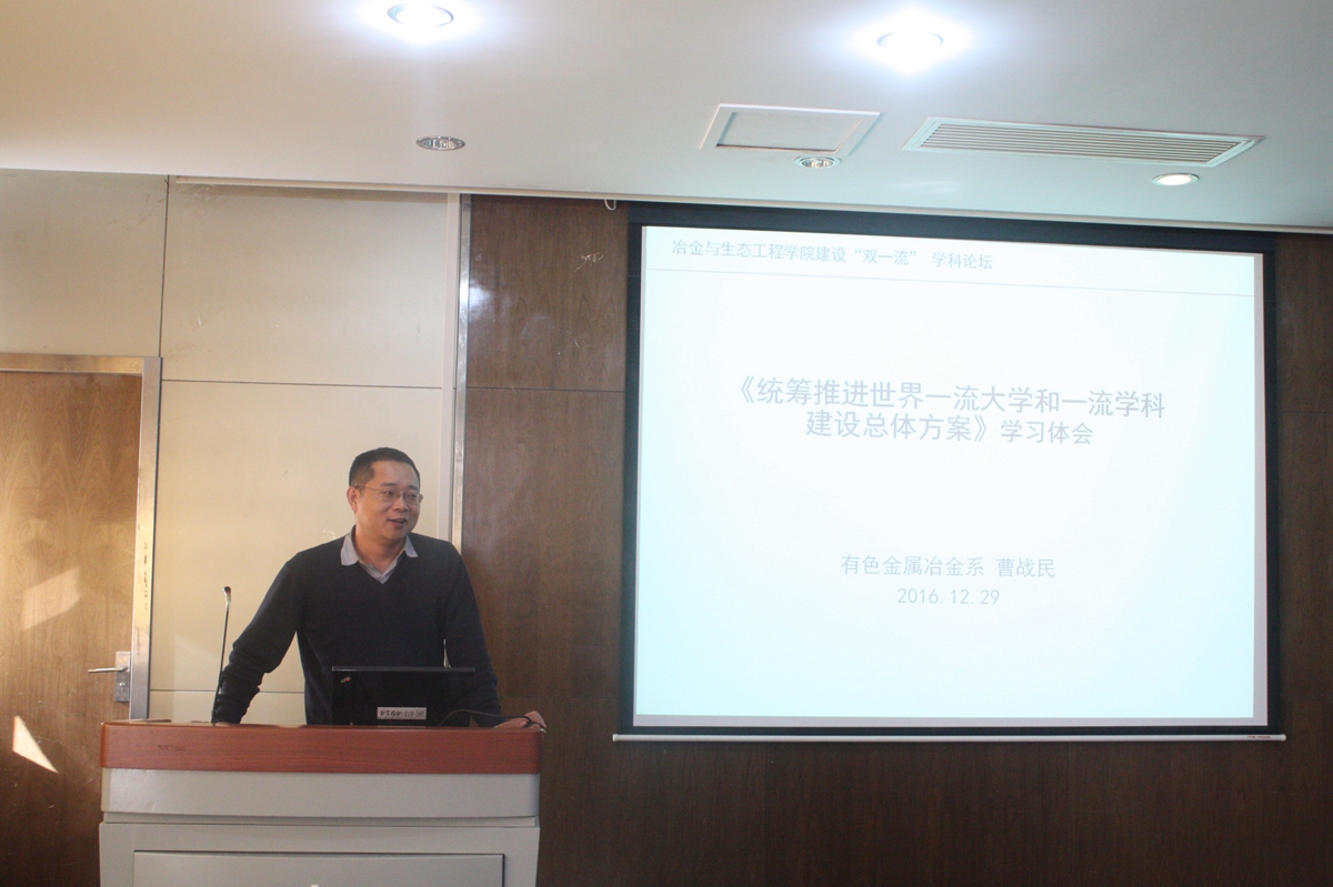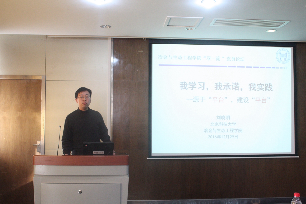 为加强学院教职工党员深入学习贯彻习近平总书记系列重要讲话精神,2016年12月29日,冶金与生态工程学院“两学一做”党员论坛在冶金楼616青钢报告厅顺利召开。学校党委书记武贵龙出席本次论坛,冶金与生态工程学院院长张立峰、院党委书记张建良及全体教职工党员及积极分子参加了本次论坛。本次论坛由冶金与生态工程学院副院长张百年主持。