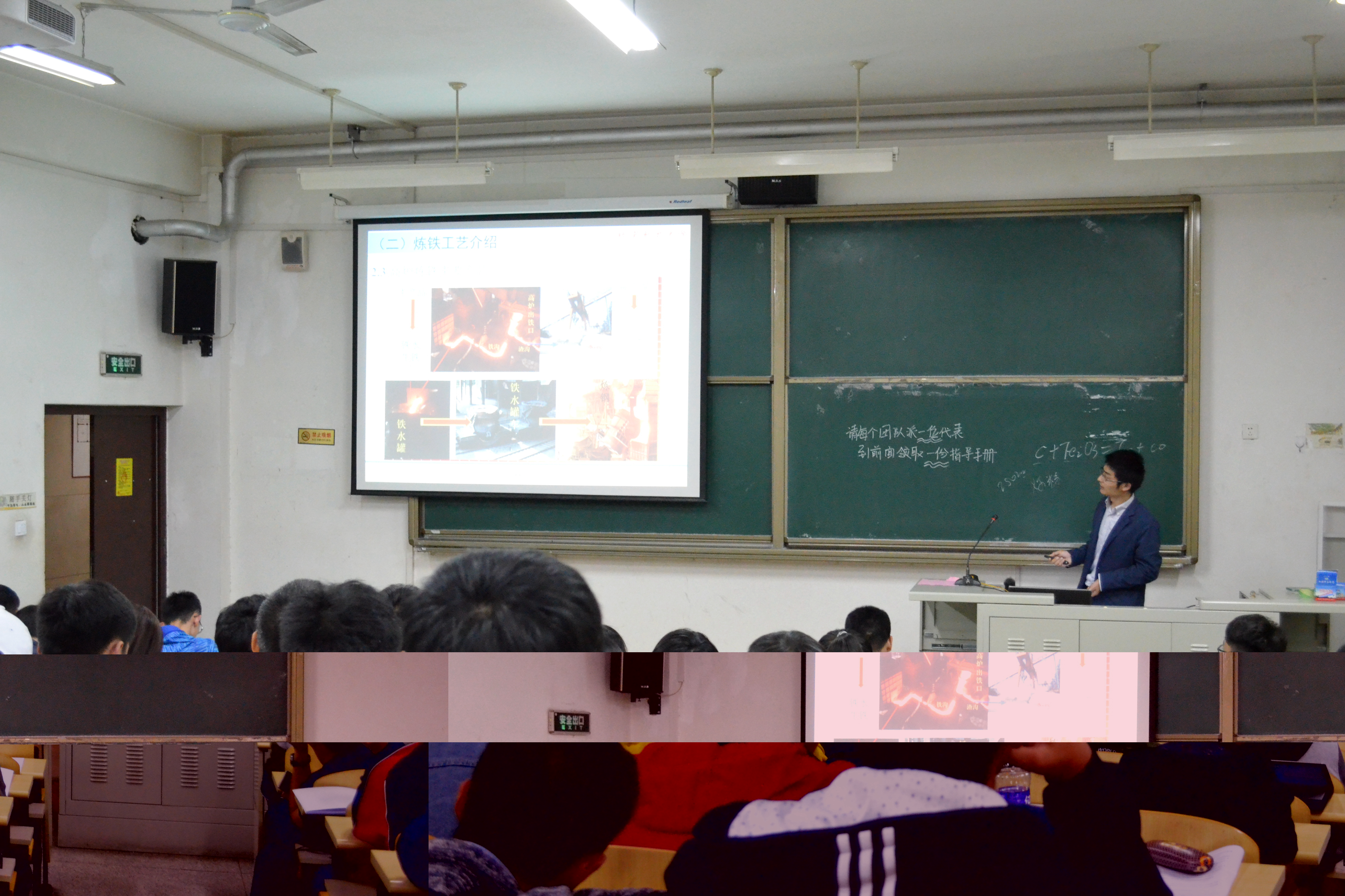 来自武汉科技大学的北京科技大学冶金与生态工程学院2016届博士毕业生徐润生老师首先从专业知识方面为现场同学们讲解了我国钢铁工业发展现状,明确的指出了中国钢铁在世界钢铁行业的重要地位,并对中国钢铁的产能问题进行了简要的分析说明,强调了钢铁产业在国民经济中的重要地位。紧接着,徐润生老师从冶金学的基本概念入手,系统的给在场的选手介绍了钢铁冶金工艺流程,指出炼铁工艺是传统钢铁生产的上游和重要基础并对高炉炼铁主要原料及其生产工艺、高炉冶炼主要过程、高炉炼铁主要产品等方面进行了详细介绍,让同学们对高炉炼铁有了一个初步的认识,增进了在场同学们的冶金知识。最后,徐润生老师介绍典型钢铁企业生产技术指标,对何为合格钢铁产品进行了简单的阐述。