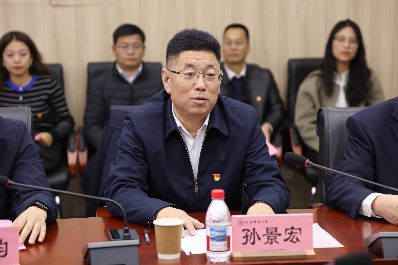 北京科技大学党委副书记孙景宏首先致欢迎辞,对潞安化工集团营销总公司党委一行的到来表示热烈欢迎。他介绍了习近平总书记三年来两次给学校师生回信的巨大鼓舞,并回顾了学校作为“钢铁摇篮”的办学成就。他表示,潞安化工集团作为省属大型能化企业,在公司治理和党建工作方面经验丰富,希望未来双方党委以“党建红”引领“科技蓝”,通过党建共建实现资源共享、优势互促的美好前景。