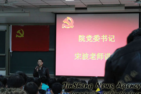 2011年3月25日晚七点,我校第166期学生业余党校入党积极分子培训班开学典礼暨第一讲于逸夫楼107教室准时召开。冶金与生态工程学院党委书记宋波、党委副书记王春义、马列主义学院左鹏教授、2010级本科生辅导员李萌出席了会议,冶金学院团委常务副书记尹传举参加并主持会议,本、硕、博入党积极分子参加了会议。本次培训班旨在提高入党积极分子对党的认识,端正其入党动机。