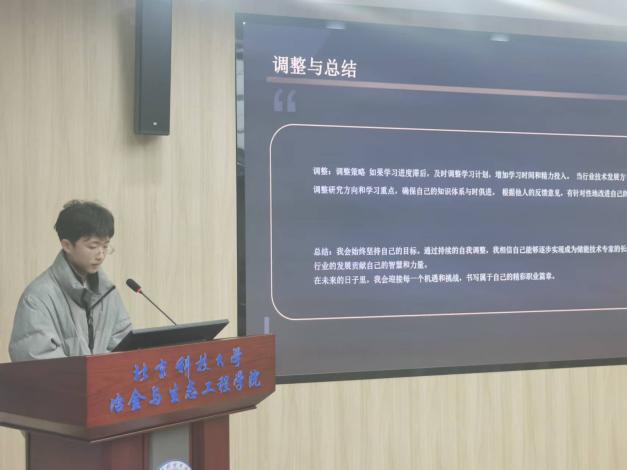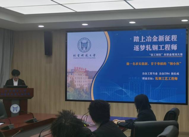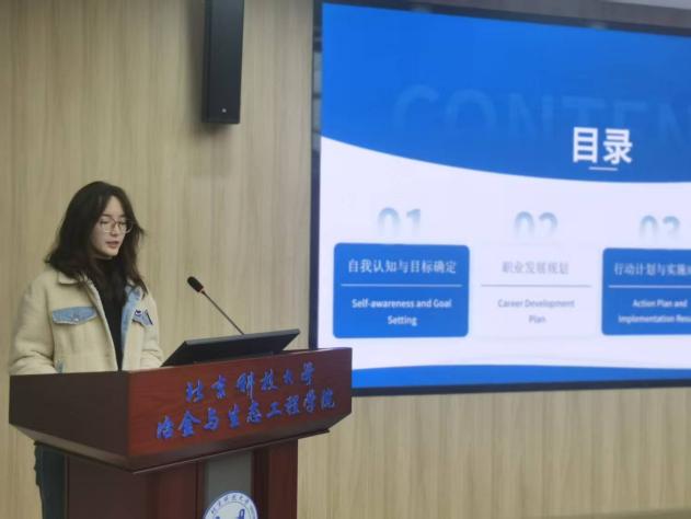 各位选手齐聚一堂,他们精心准备,用生动有趣的语言和丰富多样的形式,向在场的评委老师展示了各自专业的魅力和特色。选手们围绕“自我认知、职业环境分析、职业目标设定、评估与调整”等环节,进行了精彩纷呈的个人展示。他们的职业规划路径多元而清晰,充分展现了新时代冶金学子的远见与担当。
