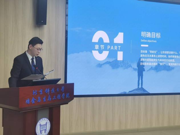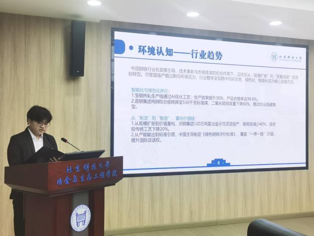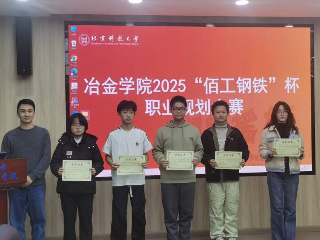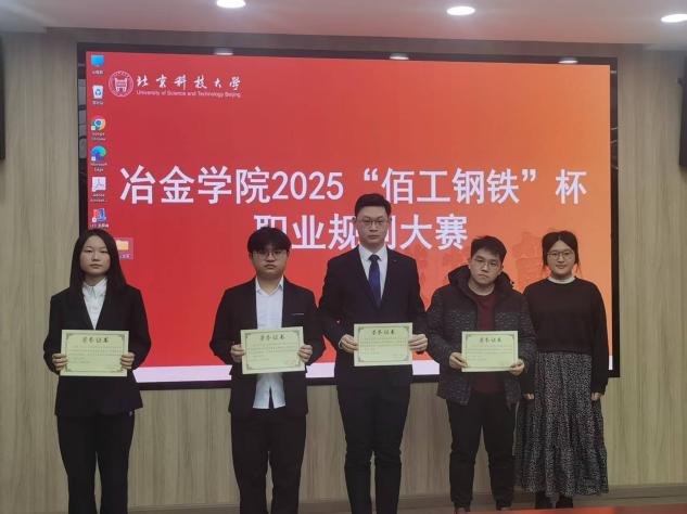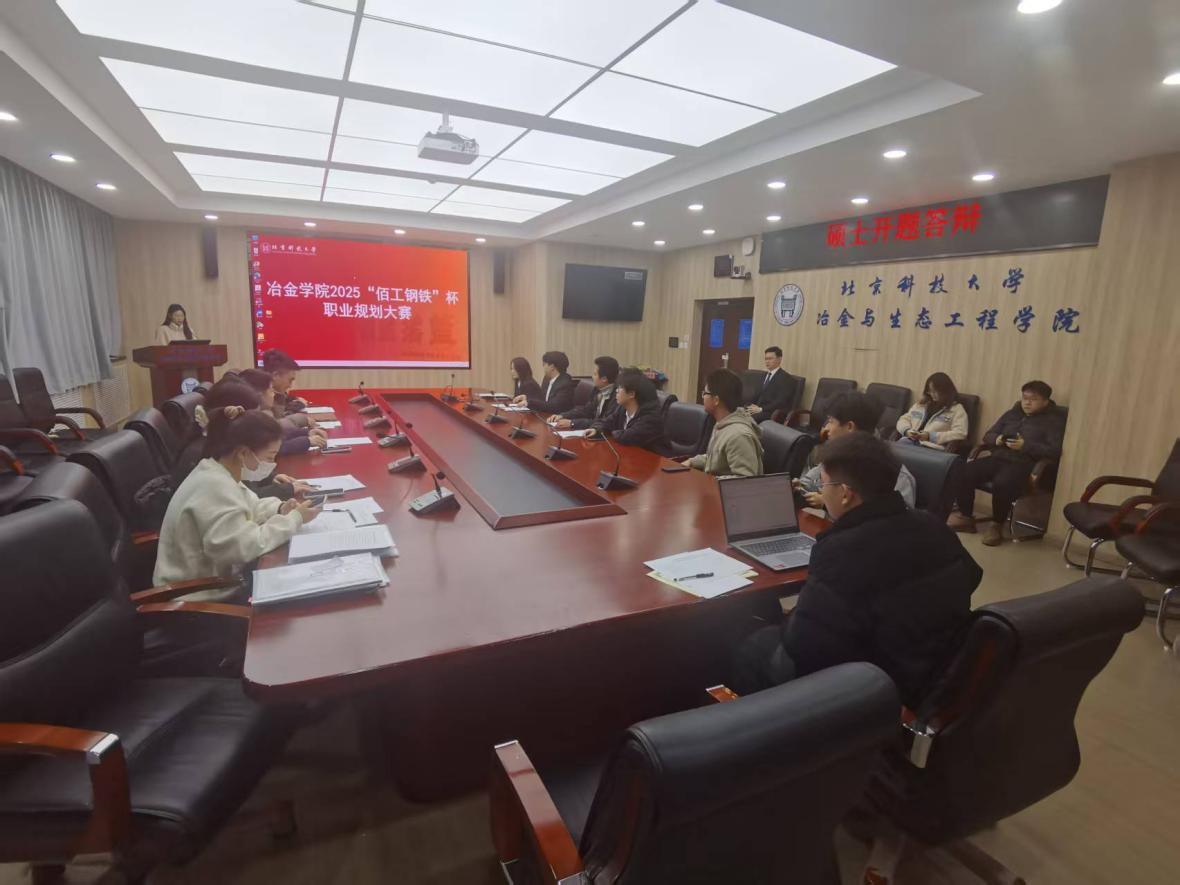 为积极响应国家关于加强新时代人才培养的号召,引导学生树立正确的成才观、就业观和职业规划意识,提升核心竞争力。近日,冶金与生态工程学院在冶金楼318成功举办了冶金学院2025“佰工钢铁”杯职业规划大赛。冶金与生态工程学院党委副书记、副院长康泰,研工组长潘淑琦,本科24级辅导员韩沐妍,就业指导教师田慧军,2024年北京市市赛获奖选手张旸堃出席活动。