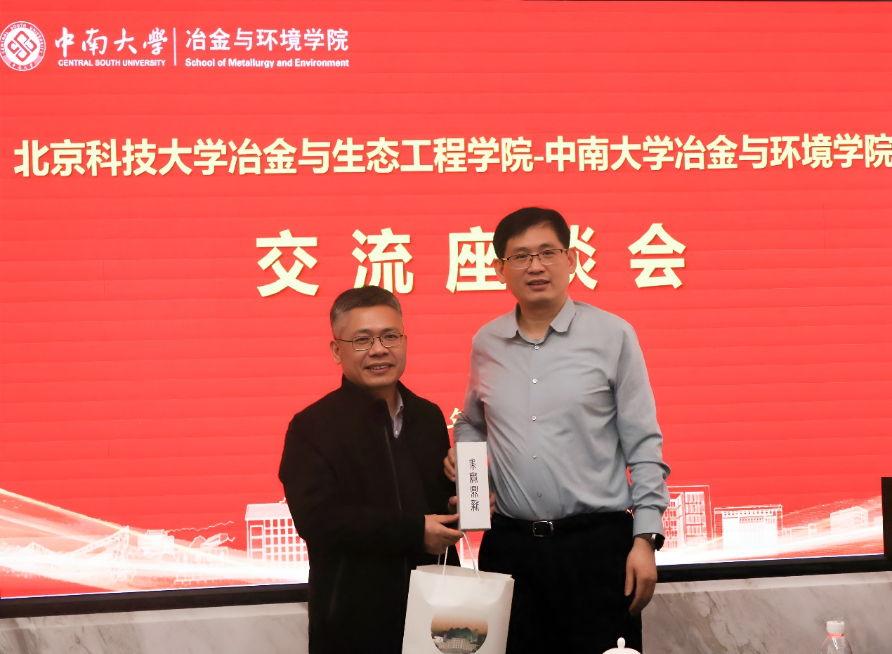 座谈结束后,双方互换了纪念礼物,表达了对彼此友谊的美好祝愿。此次调研交流增进了两院之间的相互了解,也为后续深度合作奠定了良好基础。我院将以此次交流为契机,认真总结学习中南大学冶金与环境学院的先进经验,进一步拓宽工作思路,不断提升学院办学水平与核心竞争力。