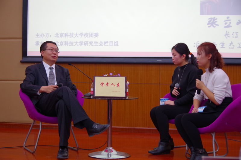 访谈临近结束时,活动进行了答疑环节。学生主要针对以下方面进行了提问:目前美国研究钢的已经很少,中国是不是太多人研究钢以及钢是不是已经被淘汰;北京科技大学可不可以研究其它的金属而不是钢;处于研二对自己的未来比较迷茫,应该怎么办。张院长对学生的提问一一做出了精彩的回答,赢得阵阵掌声。
