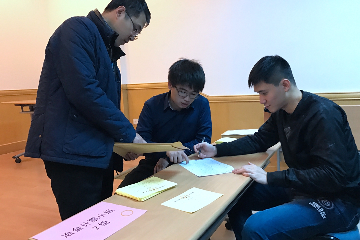 冶金学院准时于24:00停止投票,在监票人监督下,封闭票箱,粘帖封条,及时核对投票人数及剩余票数。并将投票箱送至建龙报告厅,北科大选区办组织统一开箱验票。