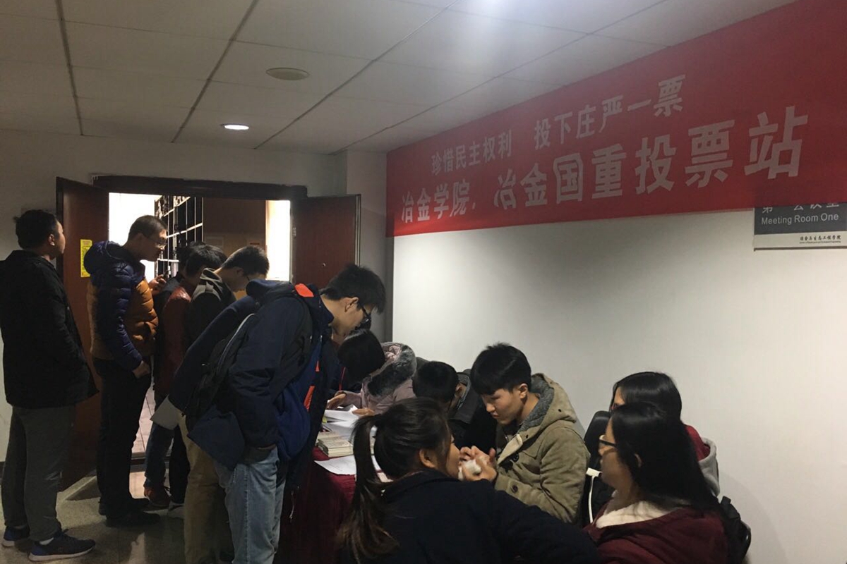 学院选举工作按照时间节点有序推进。宣传动员、选民登记等各个环节的工作都得到认真部署和落实,在各部门的通力配合下,圆满完成此次冶金学院选举站人大代表换届选举工作的选民投票选举工作。