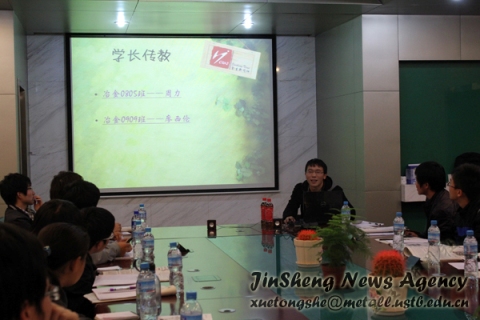 随后,新闻社副社长周超为大家介绍优秀宣传班级的评选过程。从他们认真的听讲可以看出,积极活跃的10级同学正摩拳擦掌,准备一展风采了。
