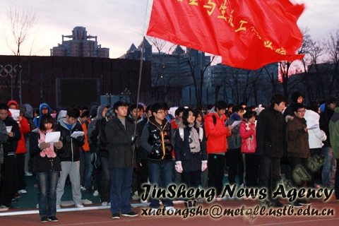 2011年12月09日清晨7点,北京科技大学纪念一二•九运动76周年主题教育活动在运动场成功举行。本科11级全体学生参与了此次纪念活动。