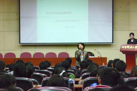 北京科技大学2011年度大学生职业生涯规划与发展辅导月已于3月15日正式启动。作为系列活动之一的“名企校友谈”由招生就业处与各学院共同举办,3月19日15:30,现任职于中国中钢集团公司人力资源部、冶金学院2006届研究生毕业生张飞作为首讲嘉宾,在镭钼报告厅与广大的学弟学妹们进行了面对面的交流,招生就业处副处长尹兆华老师出席并发表讲话。
