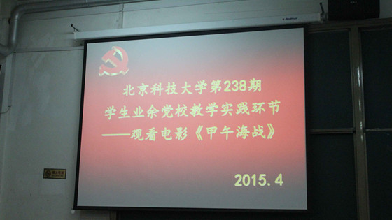4月23日晚,冶金与生态工程学院在冶金楼110教室举行北京科技大学第238期学生业余党校教学实践环节。为了纪念抗战75周年,培养大家的爱国精神,党校组织观看电影――《甲午海战》。