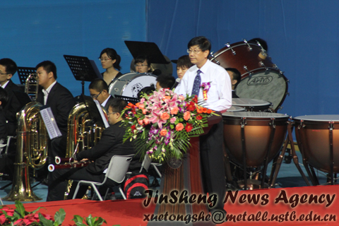 本社讯 2011年8月31日上午,北京科技大学2011级本科生开学典礼在校体育馆隆重举行。校党委书记罗维东、校长徐金梧、校党委副书记谢辉等校领导出席开学典礼。另外,包括冶金与生态工程学院王福明副院长在内的12位各学院领导代表也出席了开学典礼。特别值得一提的是,我校优秀校友黄孝斌先生也来到了典礼现场。