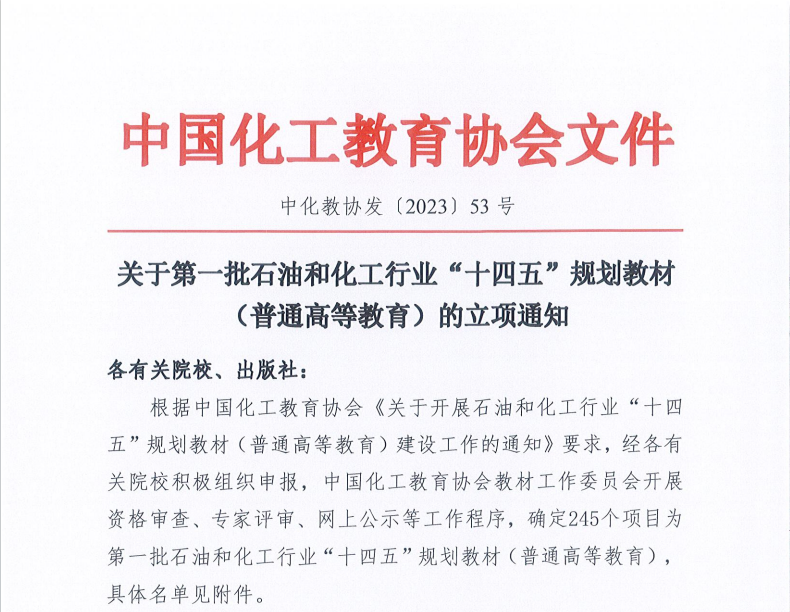 在中国化工教育学会公布的第一批石油和化工行业“十四五”规划教材(普通高等教育)立项名单中,由我院王新东教授主持申报的《电化学储能科学与工程》获批立项。