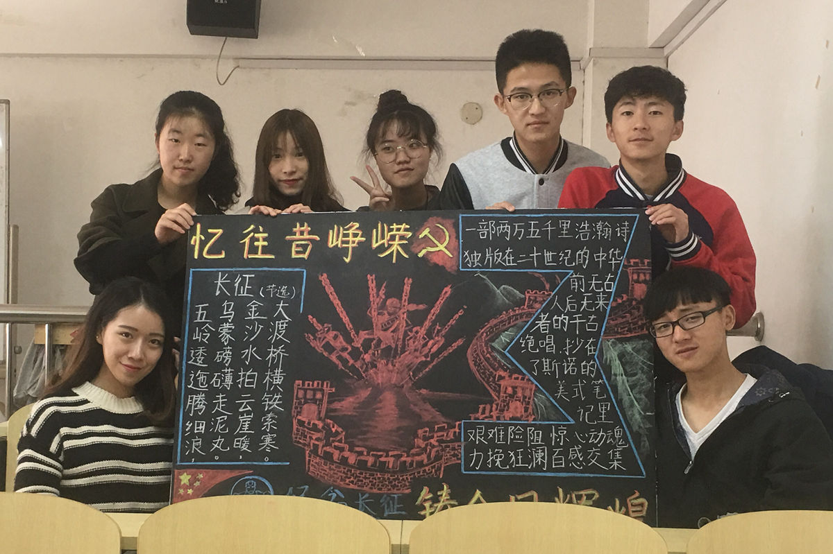 10月23日上午,为集中开展长征精神学习教育,引导学生思考长征精神的深刻内涵,思考当代需要怎样的“长征精神”,冶金与生态工程学院于冶金楼110举行“激活红色基因,共绘不朽丰碑”专题黑板报绘制活动。