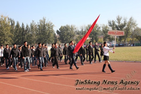 首先进行的是各学院方块队展示。迈着整齐而矫健的步伐,学校国旗护卫队率先进场。他们的飒爽英姿,斗志昂扬,不可否认地为此次运动会开了一个好头。紧接而来的依次是土环、冶金、材料等学院。按照惯例,每一支队伍都将在主席台前进行方阵展示。果不其然,每个学院的研究生们都为大家带来了一次视觉盛宴。
