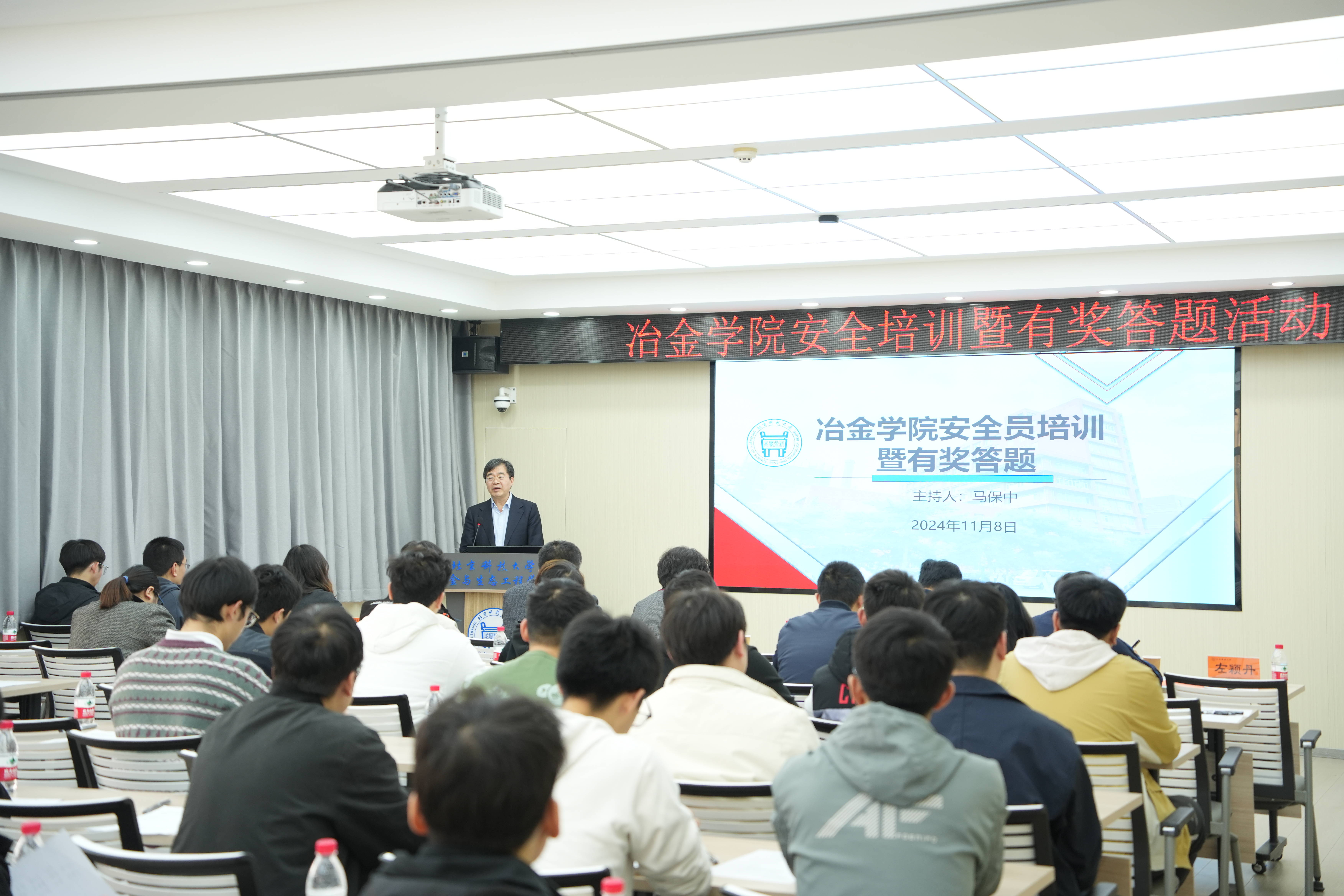 按照学院年度工作安排,为深入推进巡察整改措施落地见效,不断提升广大师生的安全意识和安全员的工作积极性,冶金与生态工程学院全体科研实验室安全员及各楼层安全员60余人于11月8日下午在616会议室参加安全培训,并举行有奖竞答活动。学院院长张建良及各系所负责人代表出席培训会,活动由副院长马保中主持。