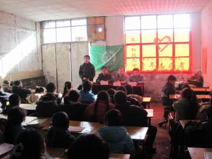 绿园小学是一所农民工子弟小学,是冶金与生态工程学院的挂牌服务基地,其校舍十分简陋,师资力量单薄,他们的困难受到了绿盾环协和校志工部的关注。绿盾环协决定从回收废品转卖得到的资金中抽出500元捐赠给绿园小学。钱的本身已具有特别的意义,这是绿盾环协的志愿者们用自己实际的环保行动换来的,而这些钱将会变成绿园小学的孩子们手中的笔、本,帮助他们更好的完成学习生活。
