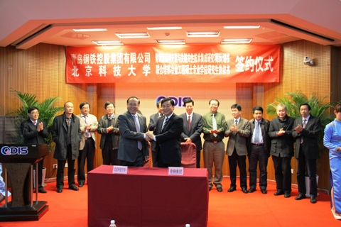 2013年11月12日,北京科技大学与青钢集团在青钢研发楼学术报告厅正式签订《青钢新品种开发与关键共性技术集成研究项目计划书》和《联合培养冶金工程硕士专业学位研究生协议书》,北京科技大学校长张欣欣,副校长武德昆、校科研部、研究生院、校友会、冶金与生态工程学院等相关领导及教师共19人出席签字仪式。青钢集团党委书记、董事长、首席执行官王君庭,总经理、党委副书记郭长波,纪委书记、工会主席李忠玉,总工程师、副总经理王庆贤等领导共同出席签字仪式。冶金与生态工程学院张立峰院长在仪式开始前为青钢技术人员作了题为《中国钢铁发展趋势以及几项炼钢新技术》学术讲座。