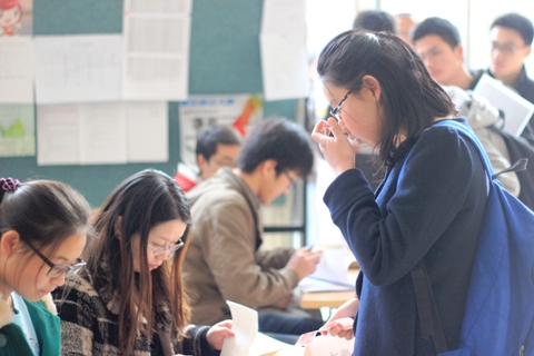 春寒料峭,北京科技大学冶金与生态工程学院迎来了2013年参加考研复试的同学。2013年4月9日早8:00至下午3点半,所有考生完成了报到手续。