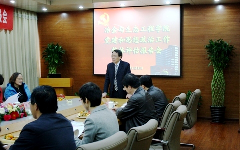 11月25日上午9点,冶金与生态工程学院党建和思想政治工作评估汇报会在冶金生态楼1015会议室隆重举行。评估专家组长原学校党委副书记李宝林、专家王玉印、何柏芝、许纪倩、邵倩臻老师亲临现场评估指导。组织部孙景宏部长、纪委曲雁常务副书记、宣传部沈崴副部长、学生处丁煦生副处长、研究生工作部宗燕兵副部长、团委王鹂副书记及部分兄弟学院的领导、老师,学院班子成员、党委委员、教师和学生代表参加了此次汇报会。