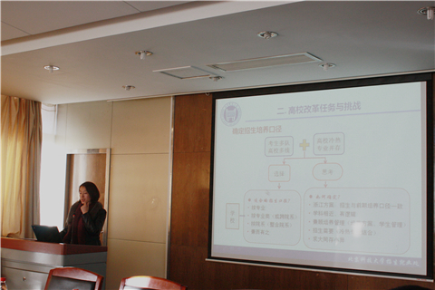 为深刻领会教育部关于浙江省高校考试招生制度综合改革试点方案的相关精神,研究部署冶金与生态工程学院本科招生考试改革相关工作,12月12日上午,冶金学院召开关于浙江省高校考试招生制度综合改革试点方案解读讨论会。校长助理薛庆国、招生就业处处长尹兆华,学院领导、各系所主任、副主任及教授代表参加会议。会议由院长张立峰主持。