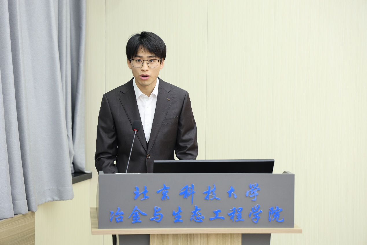 获奖团队学生代表、冶金与生态工程学院博士研究生张意坚发言。对力拓集团的支持表示了感谢,并表示将继续投身专业研究,在绿色冶金的道路上不断探索、成长。