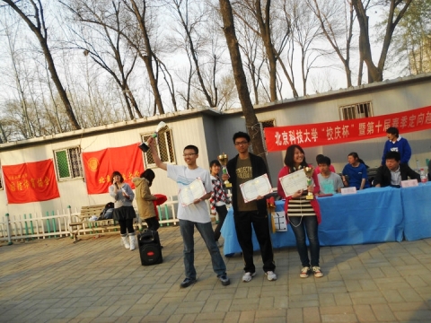 2012年4月7日,北京科技大学第十届春季定向越野竞标赛于四得公园正式开赛了。冶金与生态工程学院组队参加,最终取得测向组团体第一,男子组第二、第四,女子组冠军、第五等好成绩。