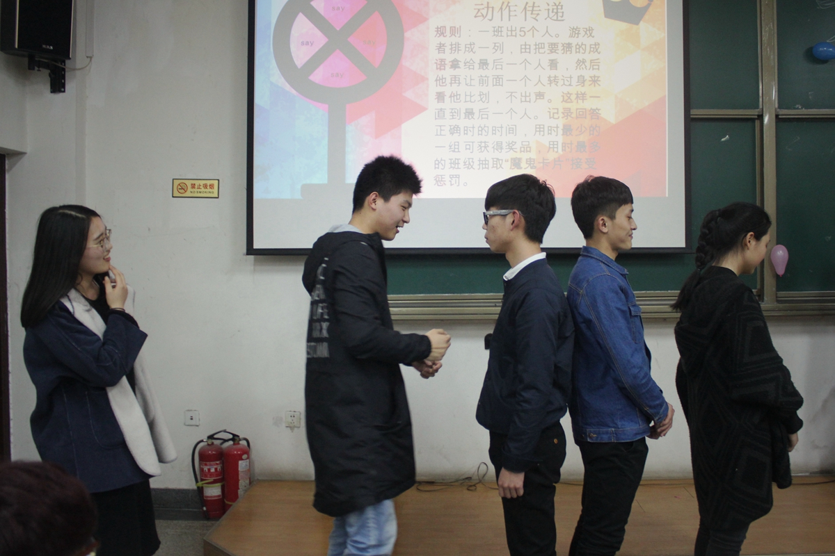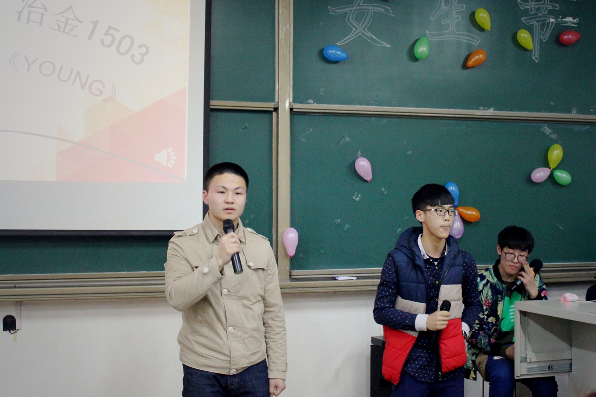 本次活动分为Show Time 与Game Time两个环节。冶金1501班带来开场秀街舞。在班长的带领下,冶金1501班全体男生祝冶金学院所有女生节日快乐,并带来歌曲串烧,歌声悦耳动听。冶金1502班为同学们表演了精彩的喜剧,风趣幽默地描述了女权至上到男女平等的改变,赢得观众阵阵掌声。在游戏环节中,七支队伍将画饼充饥、三打白骨精、眉目传情等词语表演得惟妙惟肖,引来阵阵笑声。最终冶金1506班代表队获得第一名,冶金1501班抽取了“魔鬼卡片”接受相应的惩罚,两位男同学合吃一根麻花,引来阵阵欢呼。