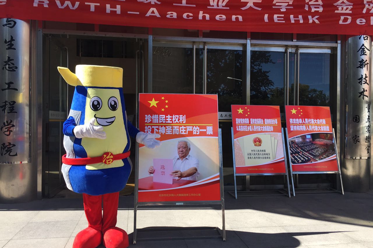 2016年9月19日上午,为落实海淀区人大代表换届选举工作,冶金与生态工程学院在冶金生态楼门前设置了宣传站点,学院机关党支部党员教师对广大师生进行了人大代表换届选举知识的普及工作。