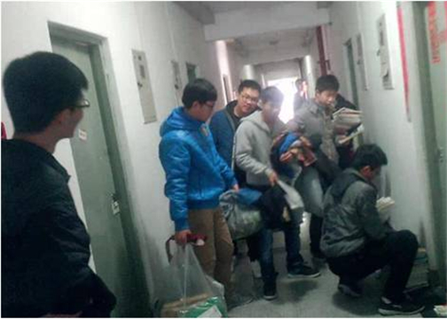 当晚,冶本13党支部党支书齐洪带领支部全体党员,向6斋每间宿舍发放宣传资料,并向6斋第二党总支的成员开展本次募捐活动的宿舍宣传动员工作,号召大家踊跃奉献自己的爱心,为构建和谐爱心社会添砖加瓦。同学们也积极响应活动号召,纷纷排队在宣传标语上签名,当时即有部分同学捐赠衣物。