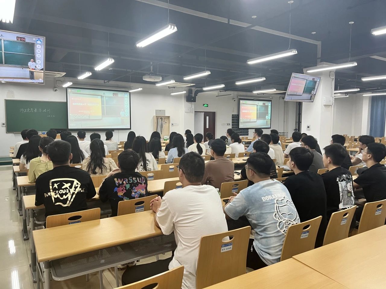 随后,宗燕兵以“培育高质量人才,发展新质生产力”为题,从“什么是新质生产力”出发,通过八大新兴产业和九大未来产业讲到新质生产力的定义,特点是创新,关键在质优,本质是先进生产力。进而引出新质生产力的深入理解------创新主导,通过讲解习近平总书记多次强调创新对发展重要性的话语,让同学们深刻了解到创新发展注重的是解决发展动力问题。宗燕兵书记为了带领同学深入理解新质生产力还讲了摆脱传统经济增长方式和摆脱传统生产力发展路径两个传统,具有高科技、高效能、高质量的三个特征,并且符合“创新、协调、绿色、开放、共享”的新发展理念。宗燕兵书记还细致有条理的讲解了人才培养与新质生产力的关系:人才驱动是新质生产力的本质要求 畅通教育、科技、人才良性循环,大力培育国家关键战略人才力量,一流学科培育一流人才。