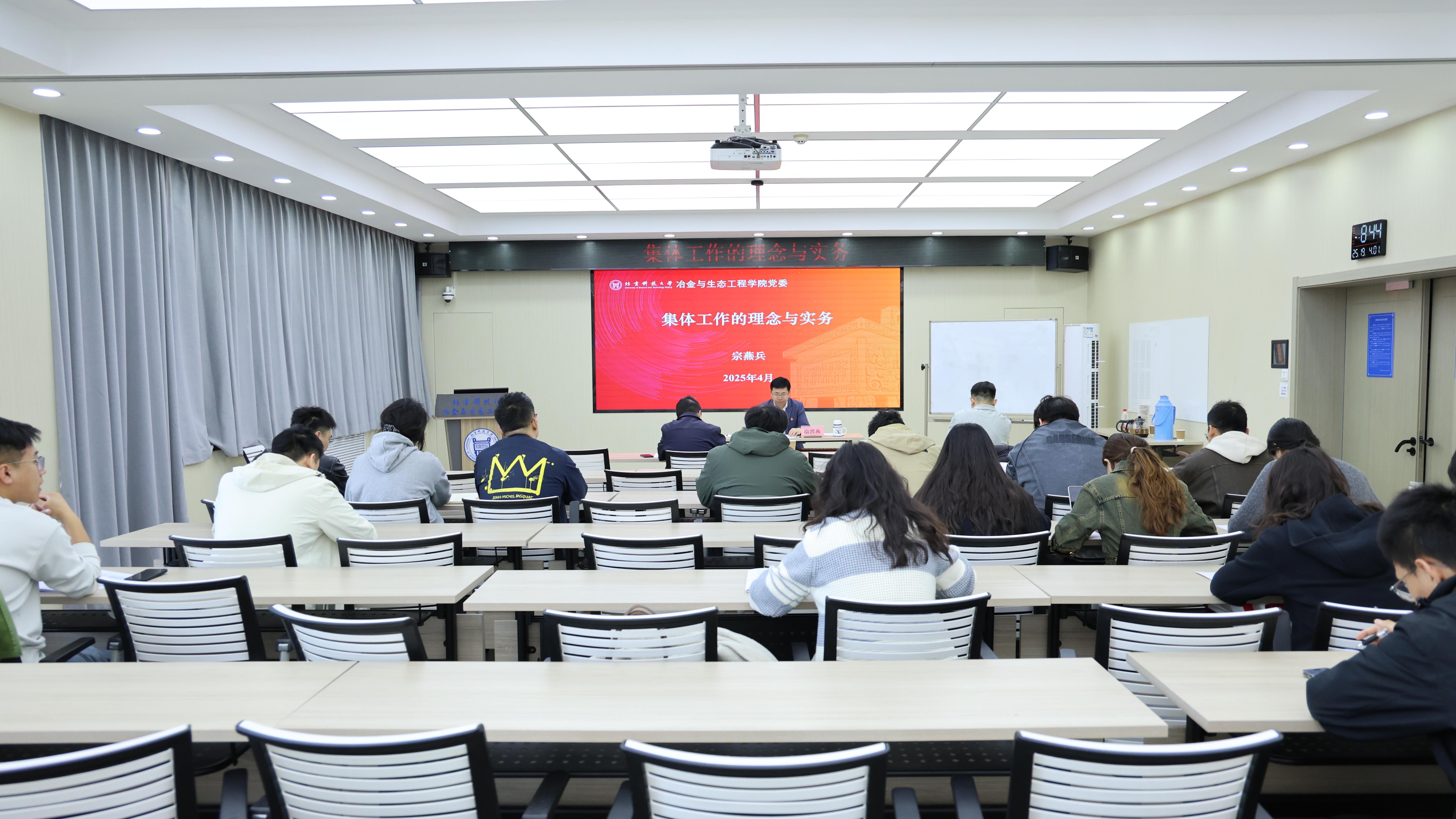 冶金与生态工程学院党委书记、高等工程师学院院长、卓越工程师学院执行院长宗燕兵教授受邀做题为“研究生集体工作的理念与实务”的报告。他围绕党的发展历程,结合多个生动案例,从作用发挥和价值体现、依据和目的、方案和方法、成绩和成效等几方面,就如何抓研究生集体建设展开了深入浅出、生动形象的讲解。