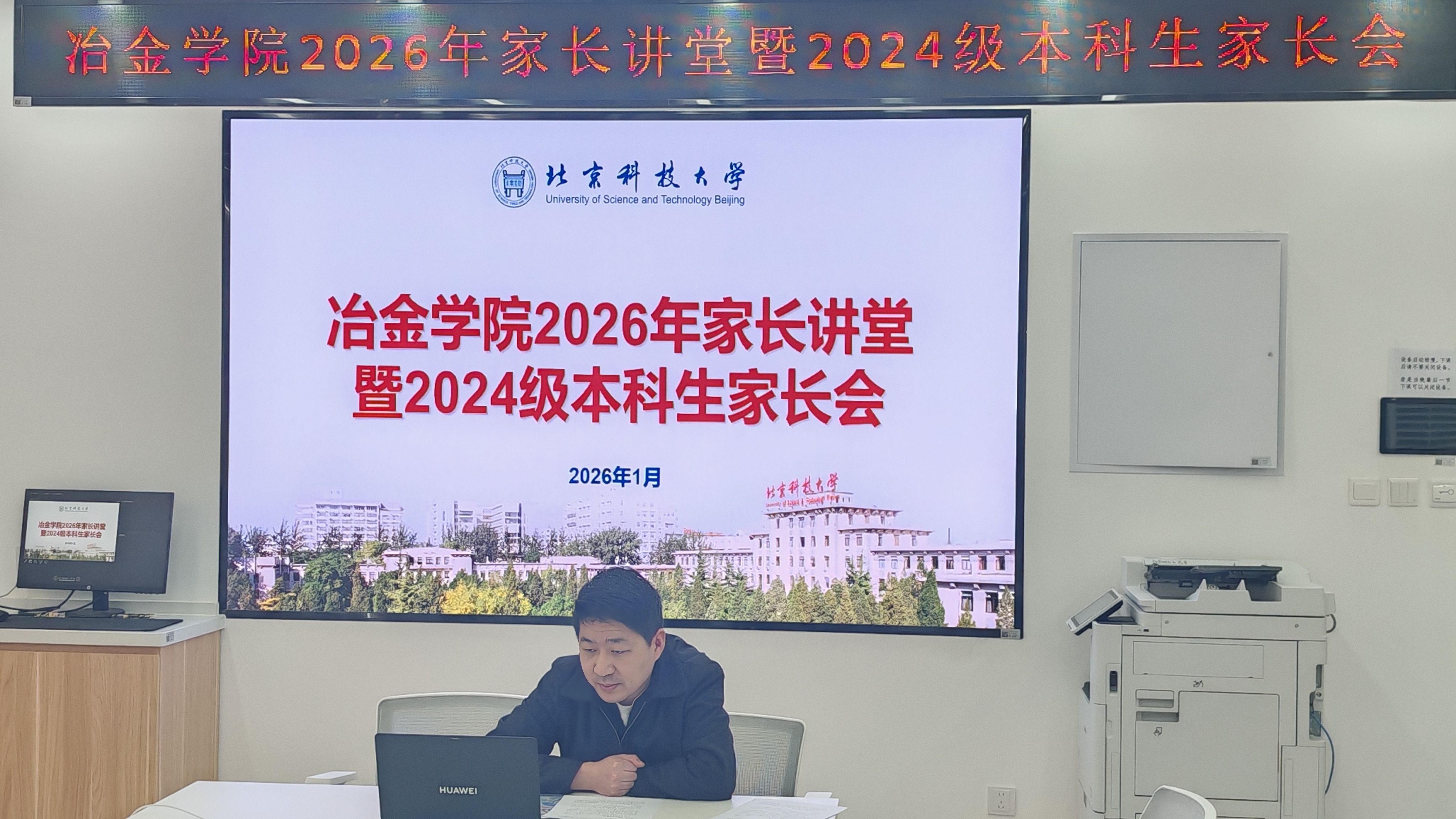近日,冶金学院依托二级心理辅导站“冶碳氧心馆”,举行2026年家长讲堂。冶金与生态工程学院党委书记宁晓钧,副院长任英,党委副书记、副院长康泰,学校心理素质教育中心教师黄佳雨,学院就业指导教师田慧军参加,会议由各年级辅导员主持,全体本科生家长云端相聚。