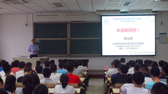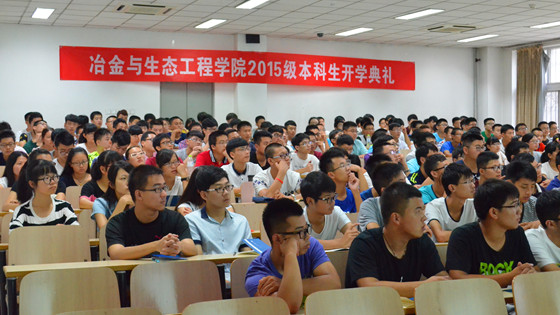 2015年8月30日下午三点,冶金与生态工程学院于逸夫楼105室隆重举行2015级本科生开学典礼。冶金与生态工程学院院长张立峰,党委书记宋波,副院长张建良、陈骏、李宏煦,有色金属系系主任薛济来,生态工程系系主任李素琴以及学院全体2015级本科新生参加此次典礼。典礼由学院党委副书记王春义主持。