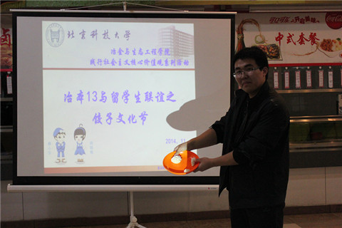 2014年11月8日晚,冶金与生态工程学院本科2013级在万秀园二层开展以“践行社会主义核心价值观,传递和谐友善学院正能量”为主题的饺子文化节活动,近百余名学院本科生积极参与此次活动。此外,活动还邀请到我校部分留学生共同参加。