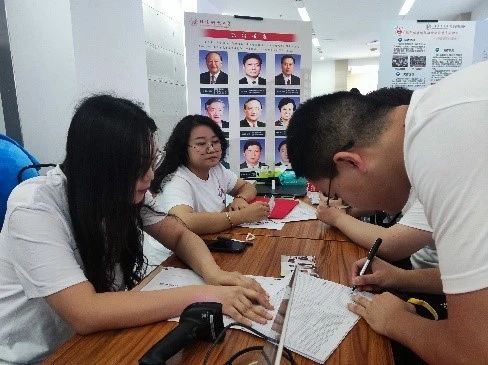 志愿者耐心地为新生办理手续